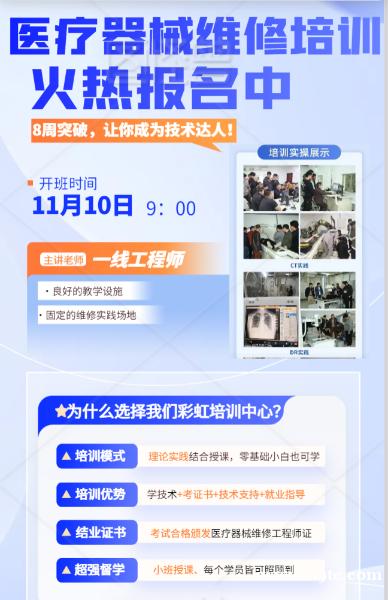 ✅ 证书加持:结业颁发行业认可证书(医疗器械维修工程师证),为您的职业生涯强力背书。
