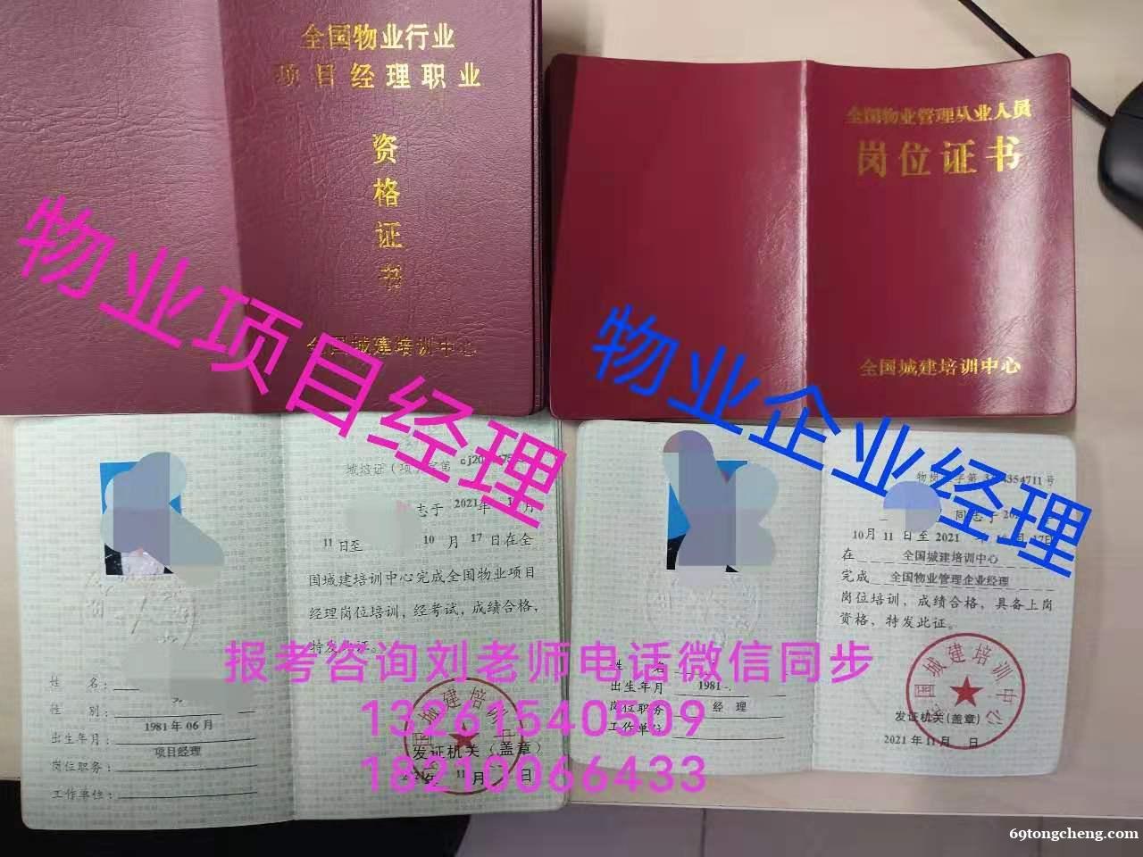 收费标准:物业经理证1200元/人