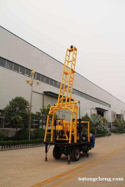 2、 汽车底盘采用农用三轮汽车,钻机传动系统及卷扬,泥浆泵等重要附件安装在此底盘上,布局合理紧凑,操作简便