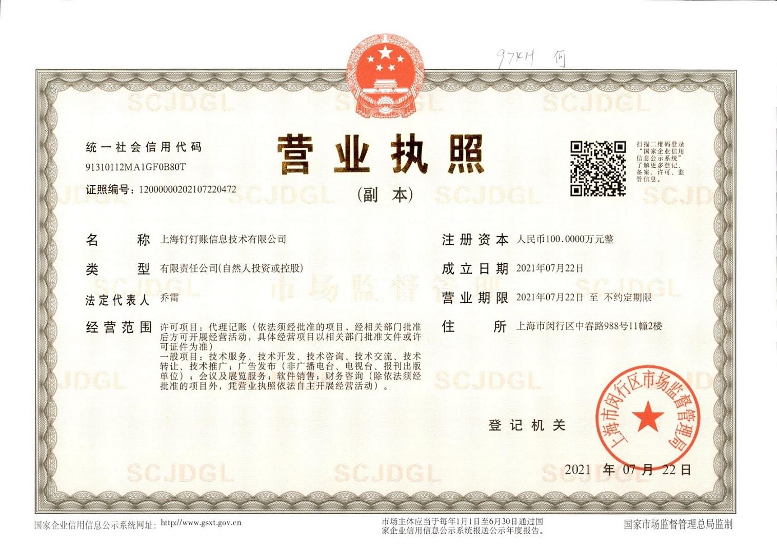 上海钉钉账信息技术有限公司