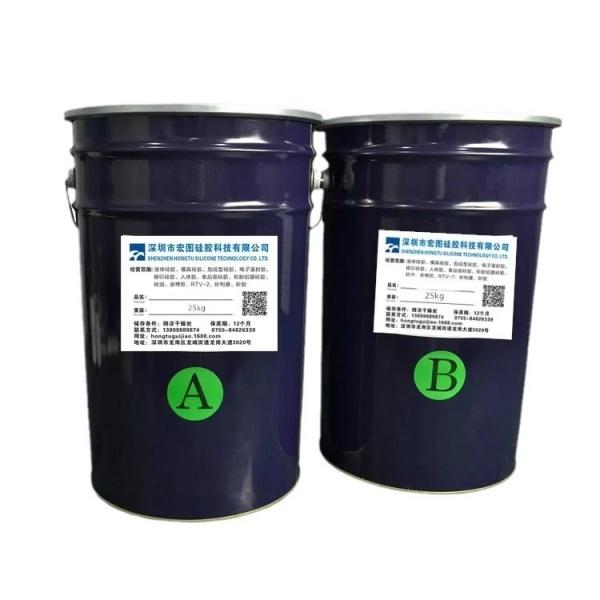 固化配比为:A组是硅胶,B是固化剂,例如100克硅胶加入2%固化剂搅拌均匀,真空脱泡后即可刷模或灌膜。(订货可提供开模教程)