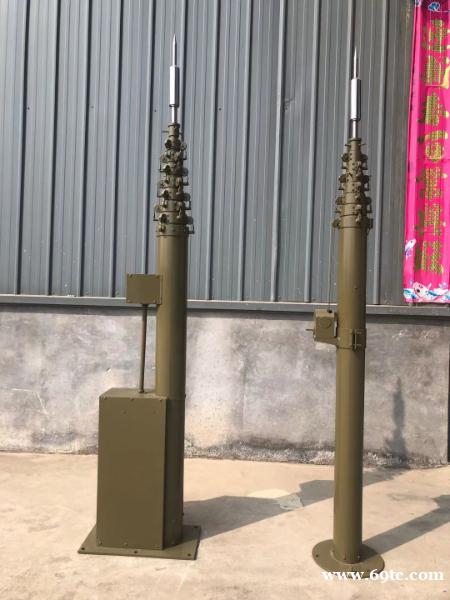 升降式避雷针支架的高度从3米﹣45米都有,用户可以根据需要进行个性定制;升降杆采用镁铝合金材料加工,具有:重量轻;收藏高度低,升高高度范围大;表面进行阳极氧化处理,适合白天黑夜使用;强耐腐蚀;负荷大;具有结构简单使用方便等特点。升降式避雷针,采用升降杆上架设避雷针,通过桅杆举升到相对高度,从而达到避雷的结果,高度可以任意定制。针对安装的问题,我们设计了二种型号: A 型和 B 型。 A 型,主要是采用固定安装方式,使用固定安装底座,可装配车上、固定地面等,其特点是:稳定性好、在电源充足的情况下,可使用全自动升降系统; B型,主要是采用三角架底座安装方式,此型号是为了满足一些临时的架设避雷需求,其特点是:移动性强,哪里需要避雷,收起就可以搬到需要的地方。架设也方便,通常手动即可完成架设工作。适合电力、军事、通信等应急避雷需求.客户仅需要提出高度要求,安装方式等。